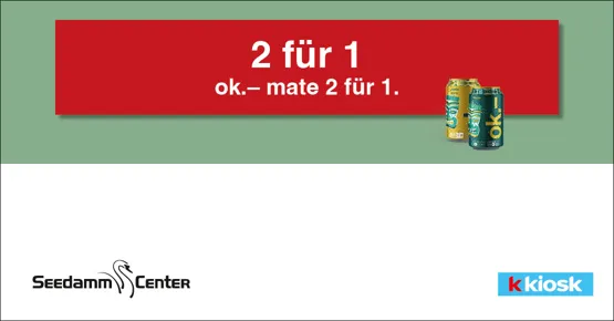 ok.– mate 2 für 1. Gültig für die Sorten classic und zero 330 ml.