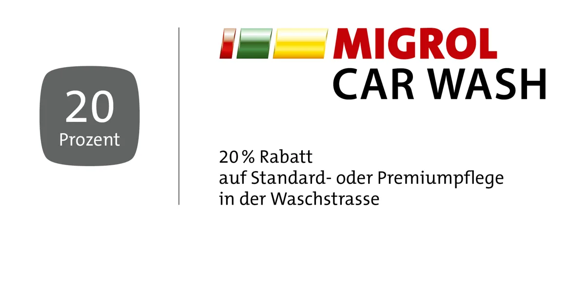 1 Bon pro Person. Nicht kumulierbar mit anderen Car Wash Rabatten. Bon beim Waschberater oder im Shop abgeben.