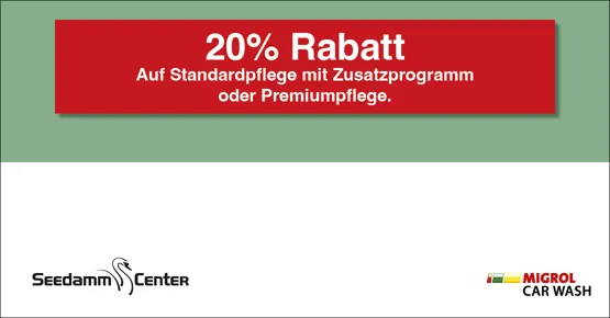 Auf Standardpflege mit Zusatzprogramm oder Premiumpflege. Bon beim Waschberater oder im Shop abgeben. 1 Bon pro Fahrzeugwäsche. Nicht kumulierbar mit anderen Car-Wash-Rabatten.