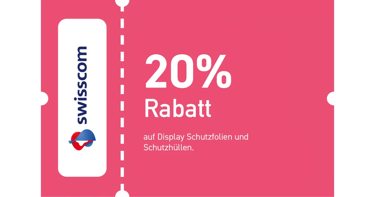 20% auf Display Schutzfolien und Schutzhüllen ausser Apple Original Produkte. Gültig vom 02.03.2026 – 02.04.2026.