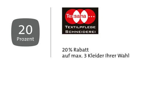 Nur 1 Gutschein pro Kunde und Einkauf einlösbar. Ausgenommen sind Hemden sowie Fremdarbeiten wie Teppich und Leder. Nicht kumulierbar mit anderen Rabatten und Aktionen.