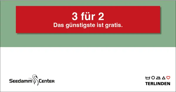 Der Gutschein ist nur einlösbar in der Terlinden-Filiale im Seedamm-Center Pfäffikon SZ. Pro Auftrag kann nur ein Gutschein eingelöst werden. Der Gutschein ist mit anderen Vergünstigungen nicht kumulierbar. Barauszahlung nicht möglich.
