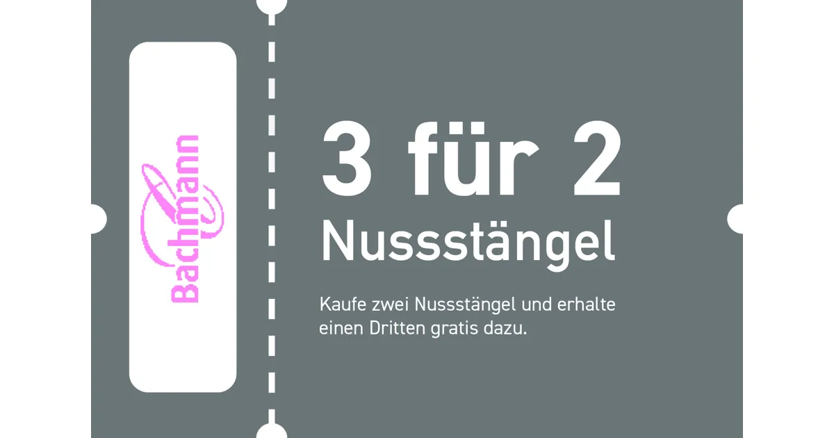 Kaufe zwei Nussstängel und erhalte einen Dritten gratis dazu.