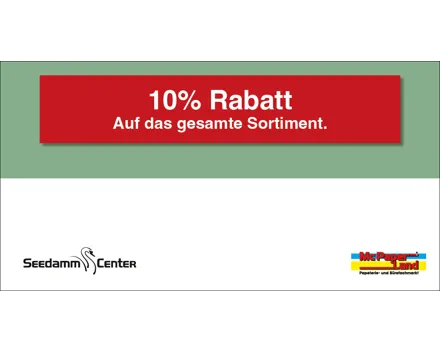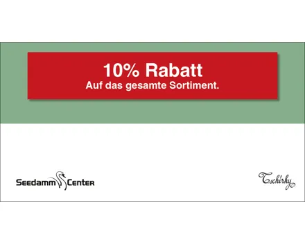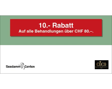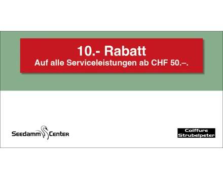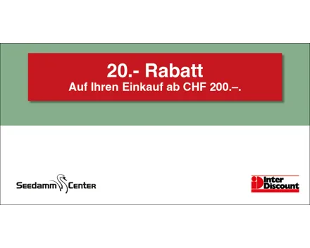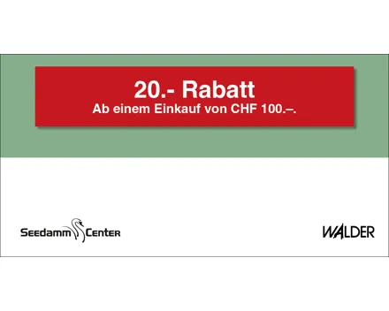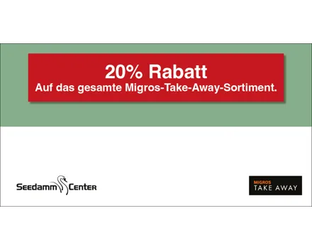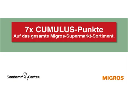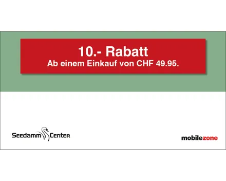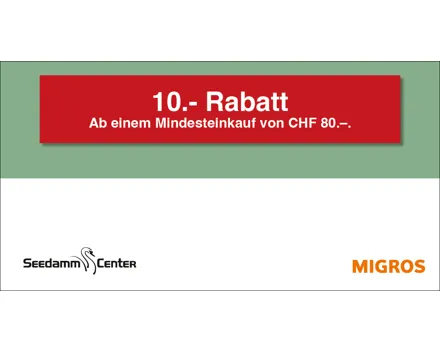 10.– Rabatt ab einem Mindesteinkauf von CHF 80.–. Auf das gesamte Migros-Supermarkt-Sortiment. Einlösbar im Migros-Supermarkt Seedamm-Center. Ausgenommen sind Gebührensäcke und -marken, Vignetten, Depots, Serviceleistungen, E-Loading, iTunes-/App-Karten, SIM-Karten, Gutscheine, Geschenkkarten und Smartboxen.